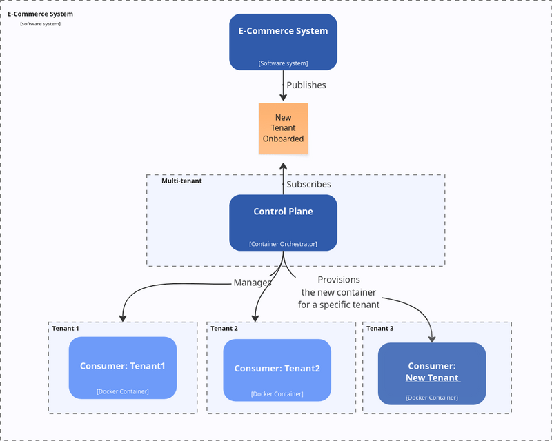 }Of course, this wouldn’t be fully dynamic, but we could make it dynamic at the infrastructure level, e.g., by passing the tenant ID from an environment variable and spinning up a new Container (e.g., a Kubernetes Pod).