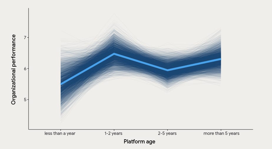 In the case of throughput, we saw approximately an 8% decrease when compared to those who don’t use a platform. We have hypotheses about what might be the underlying cause. (…)